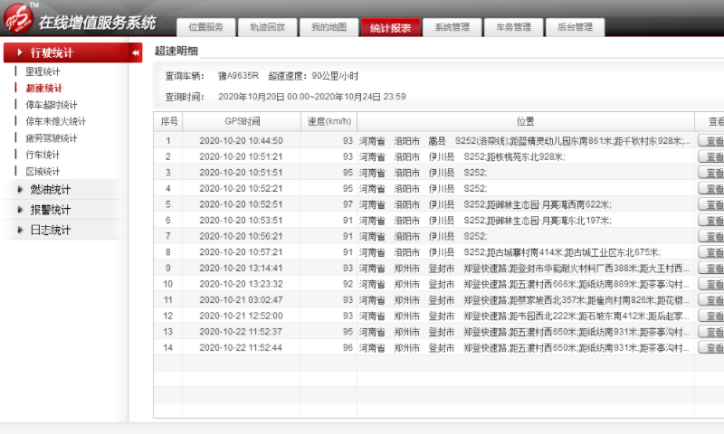 豐富詳細(xì)的車輛報(bào)表方便統(tǒng)計(jì)行駛里程停車地點(diǎn)停車時(shí)長(zhǎng)發(fā)動(dòng)機(jī)工作時(shí)長(zhǎng)綜合油耗溫度超速統(tǒng)計(jì)