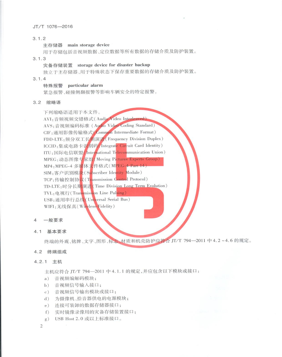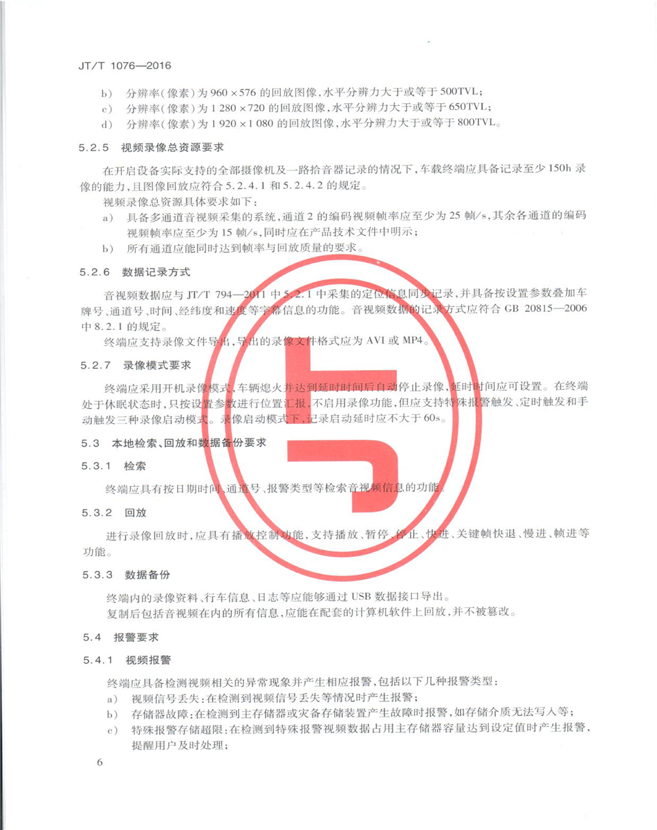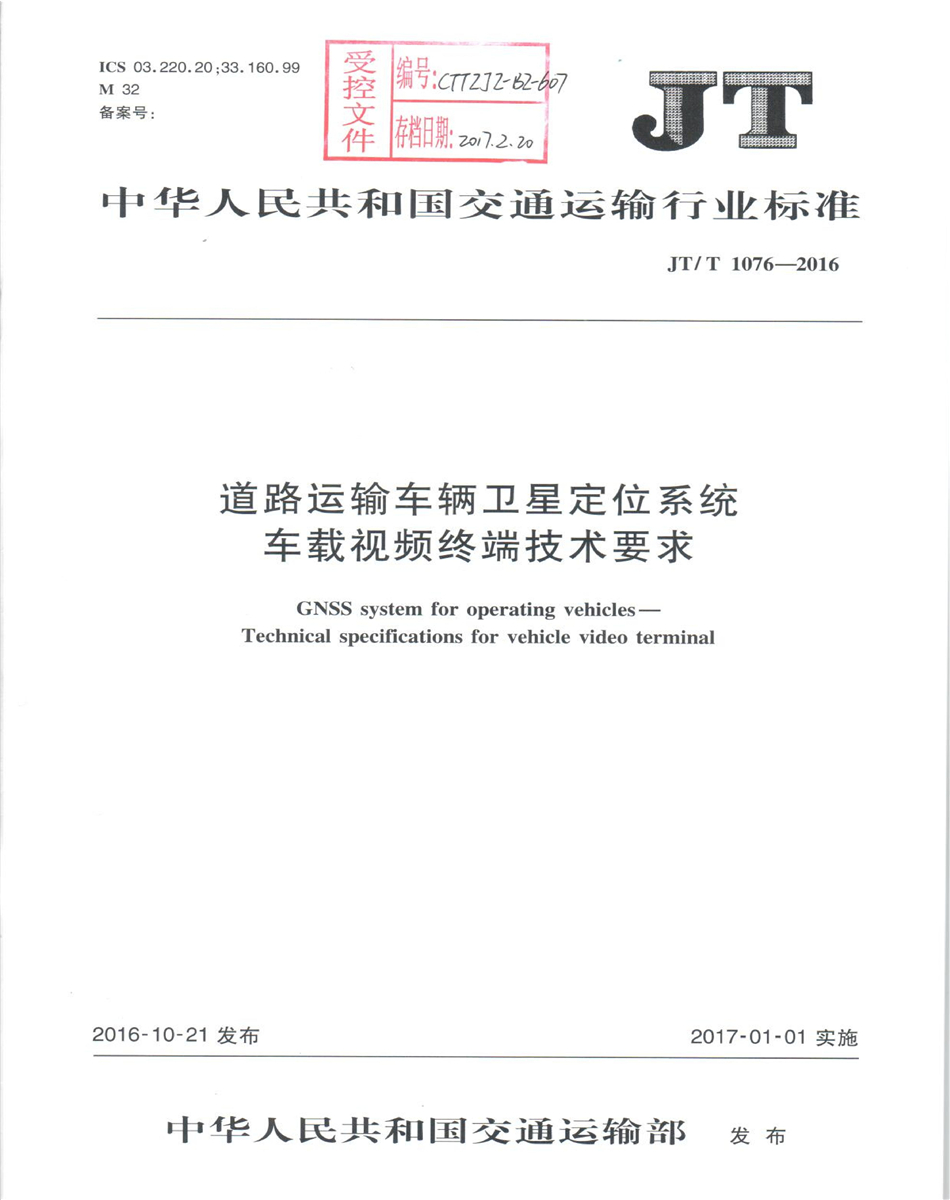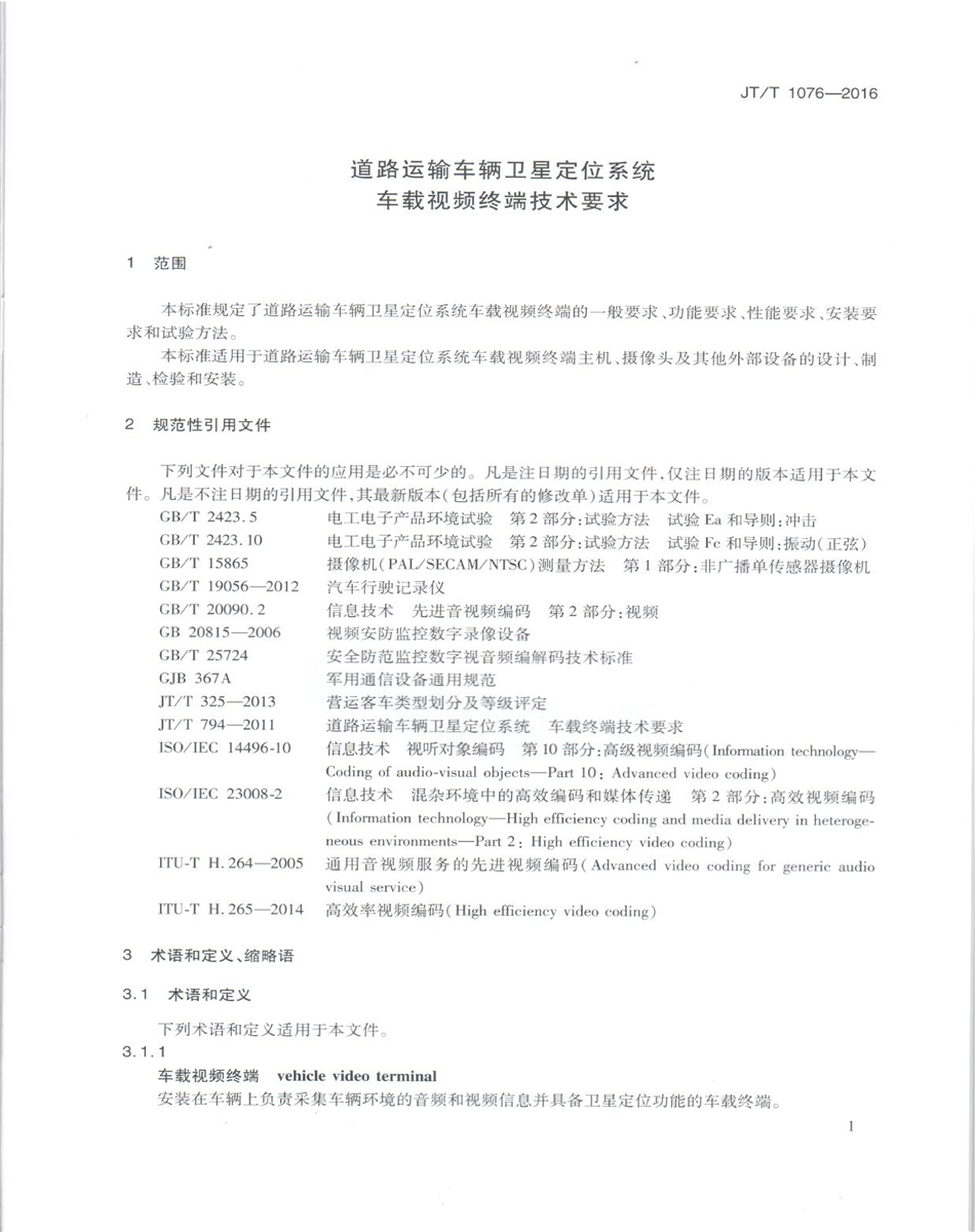 JT/T 1076-2016道路運輸車輛衛(wèi)星定位系統(tǒng)車載視頻終端技術(shù)要求