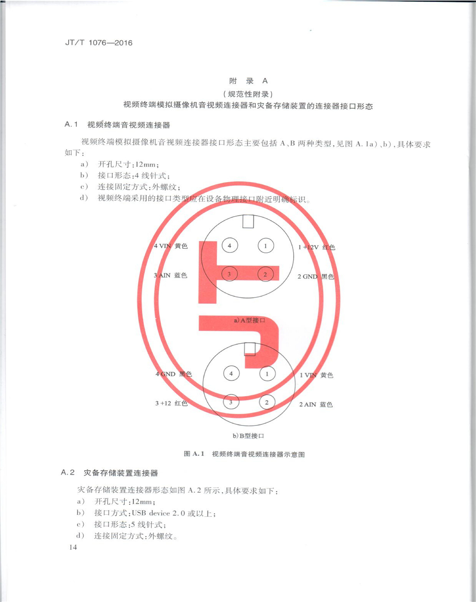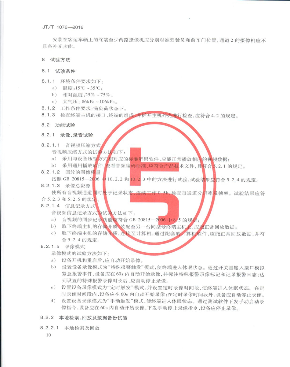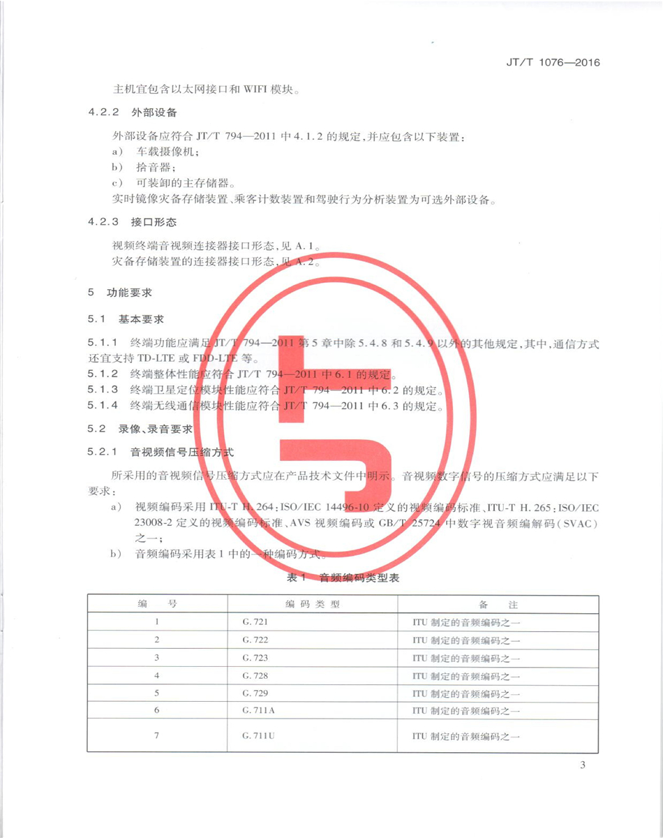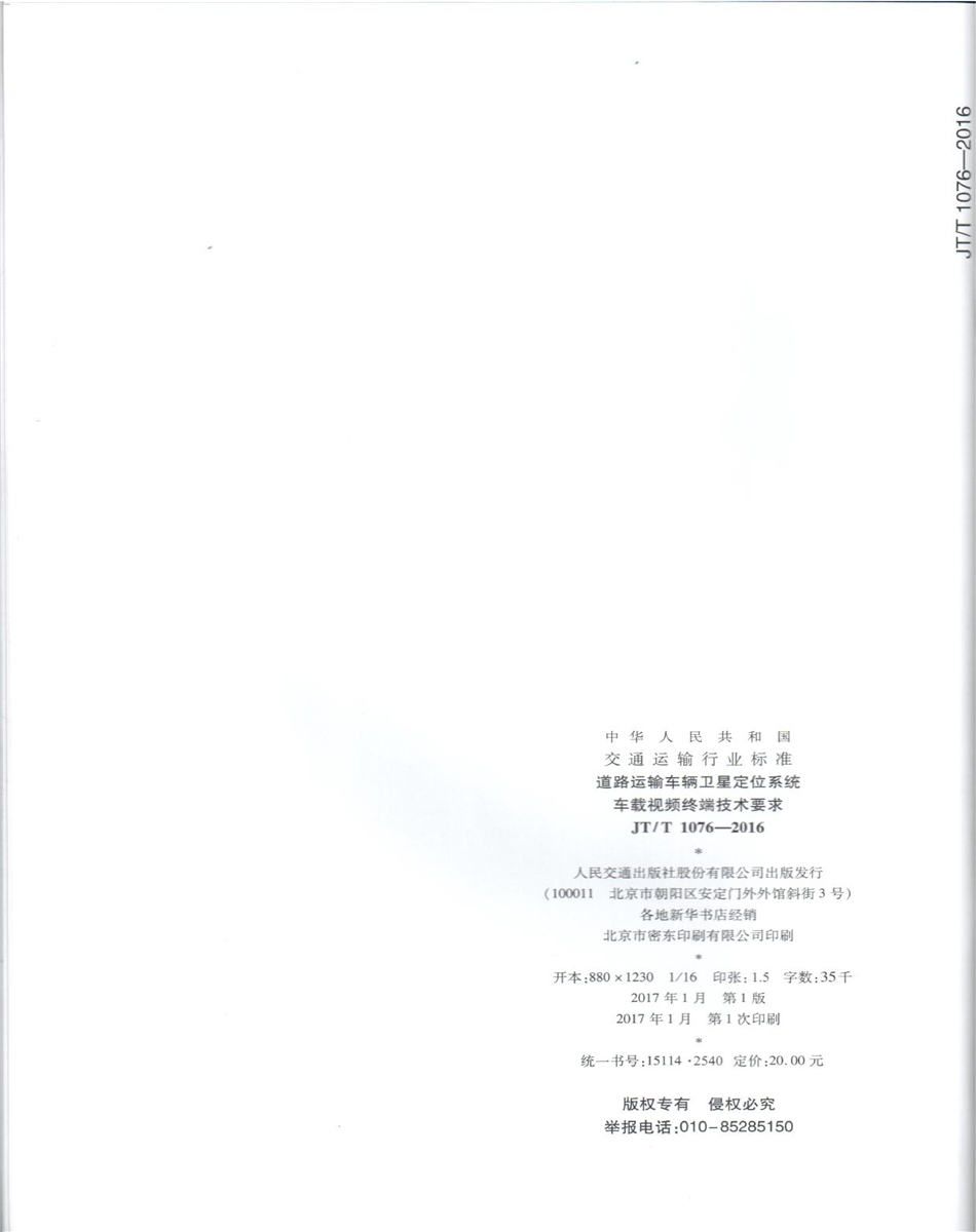 JT/T 1076-2016道路運輸車輛衛(wèi)星定位系統(tǒng)車載視頻終端技術(shù)要求