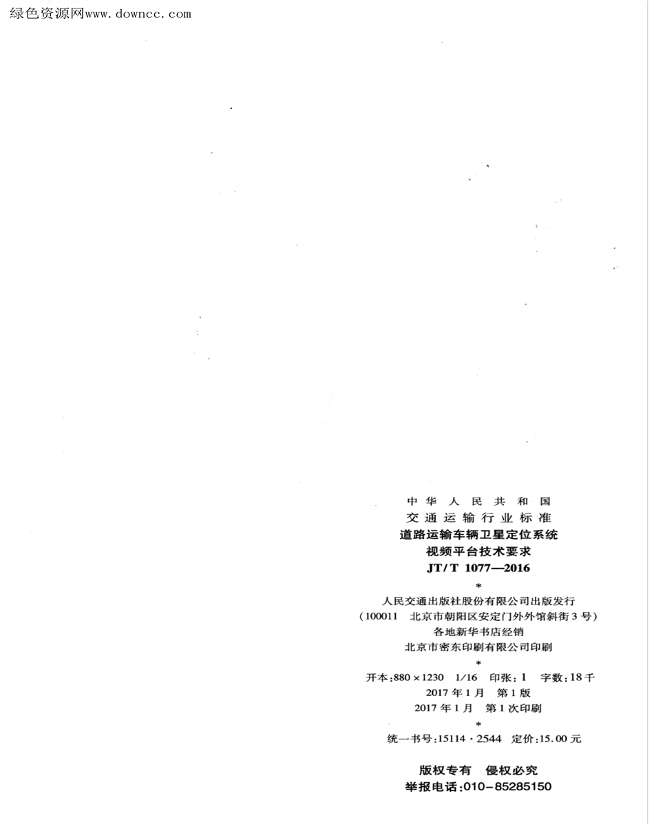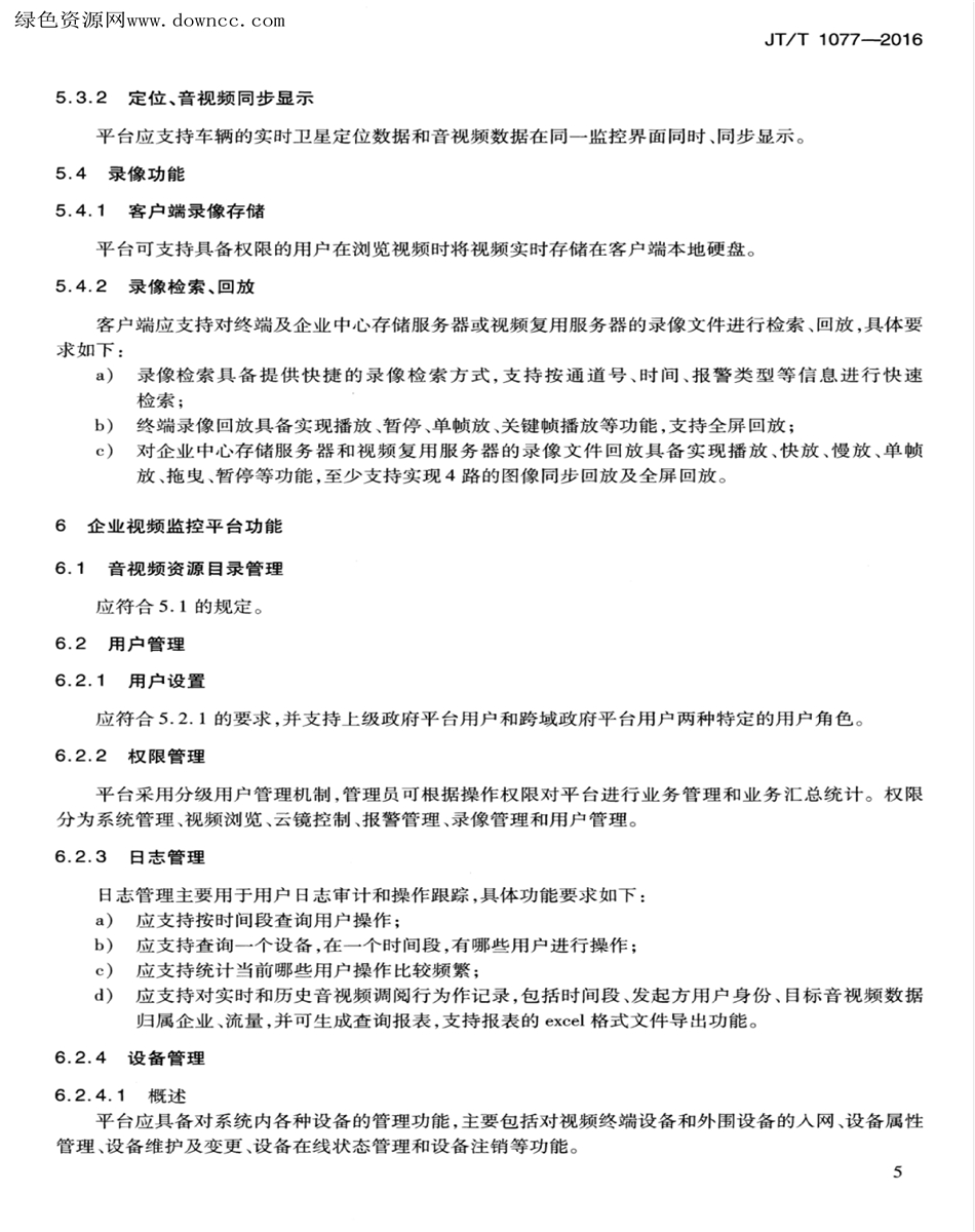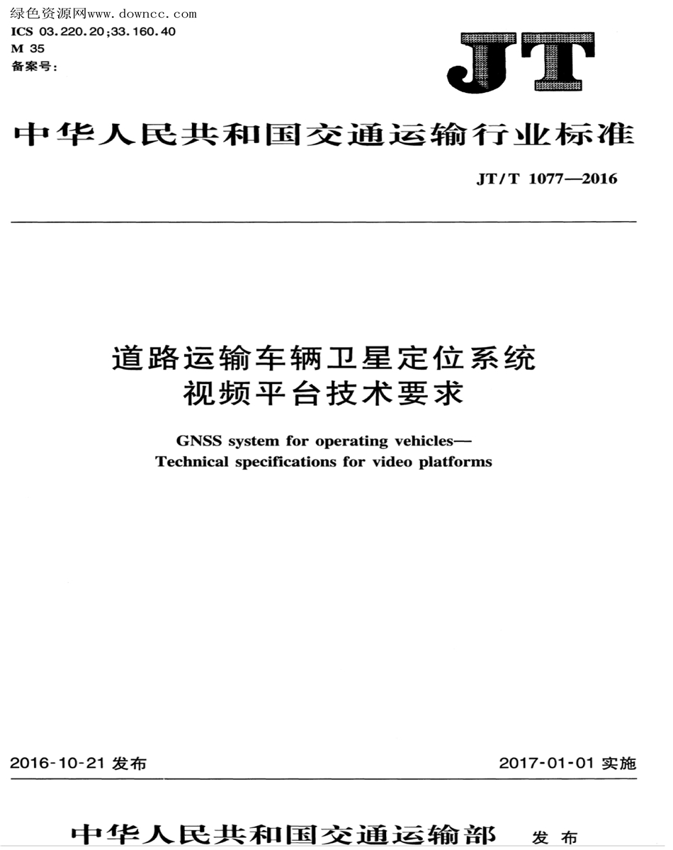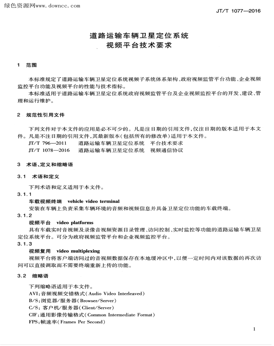 JT/T 1077-2016道路運輸車輛衛(wèi)星定位系統(tǒng)視頻平臺技術要求