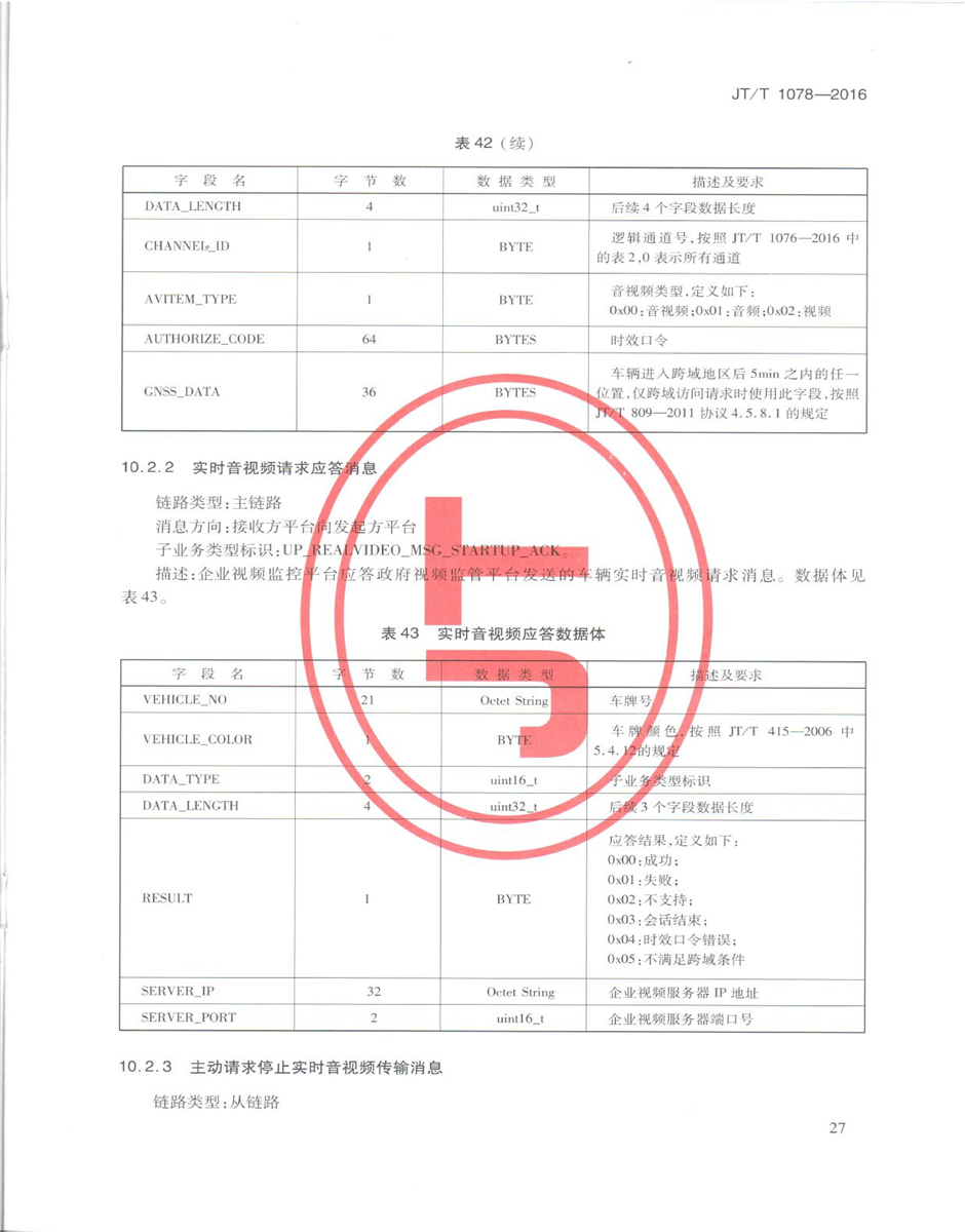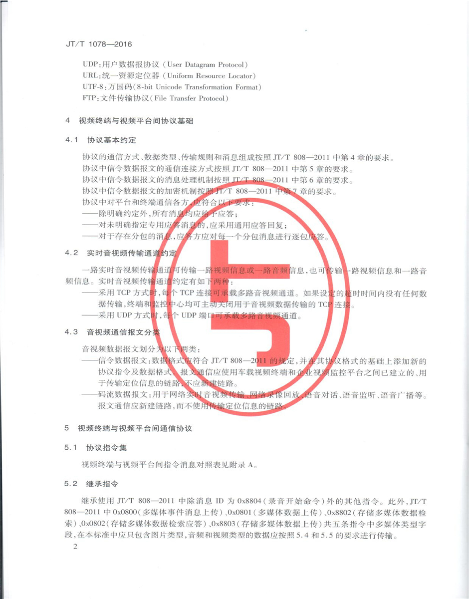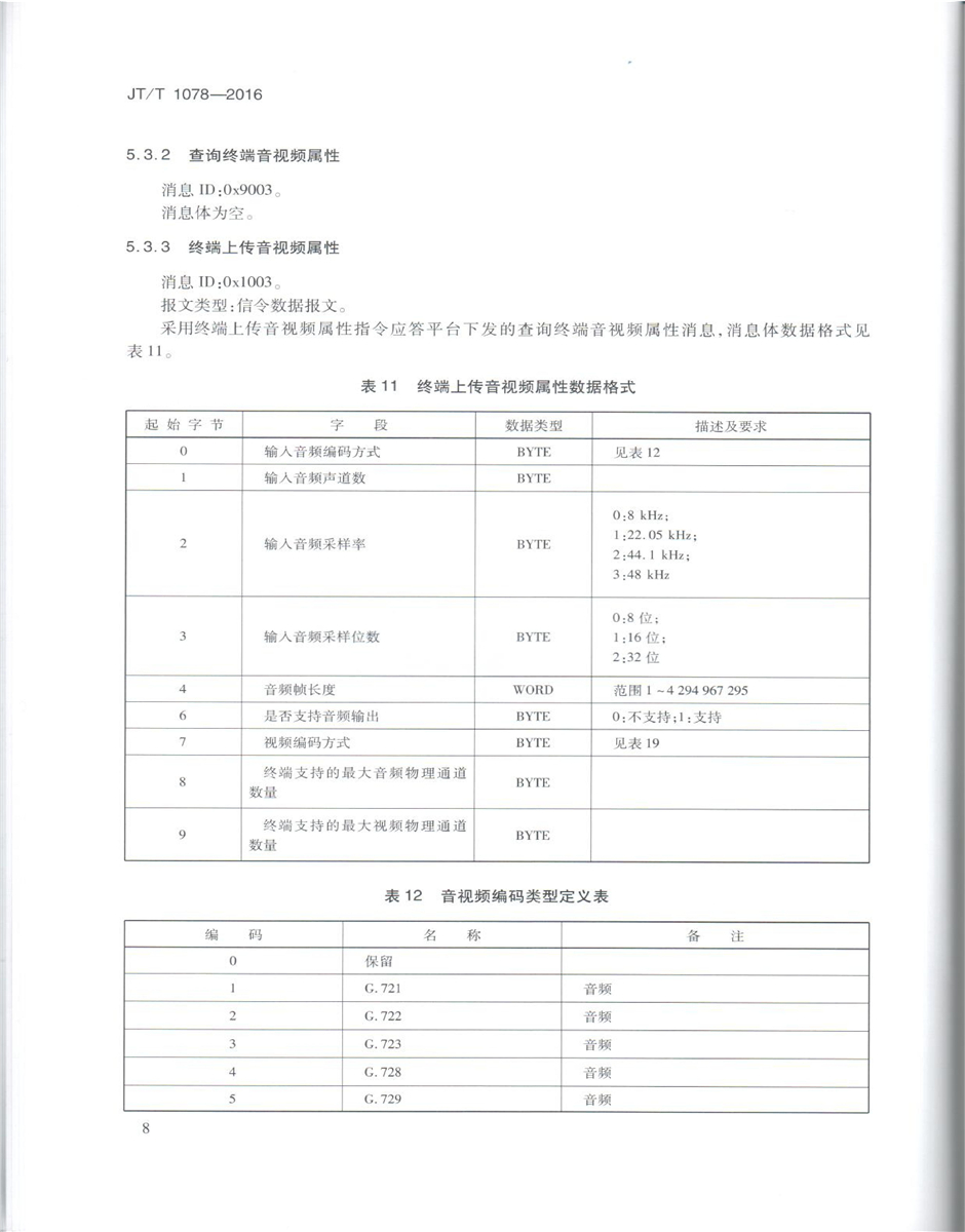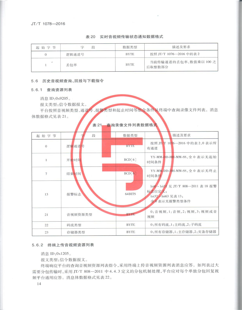 JT/T 1078-2016道路運(yùn)輸車輛衛(wèi)星定位系統(tǒng) 視頻通信協(xié)議