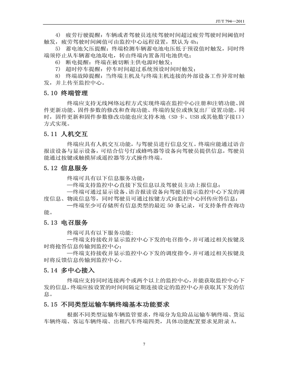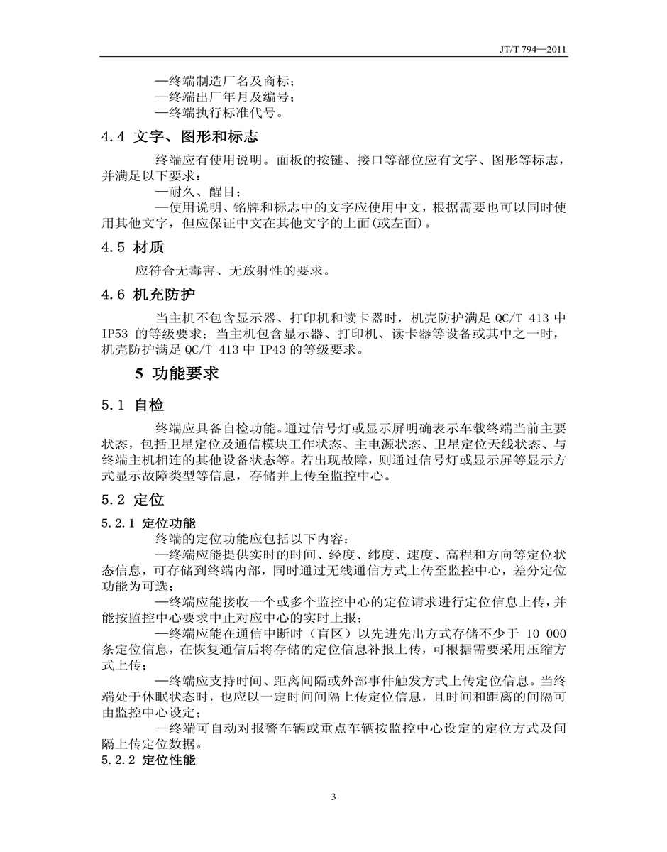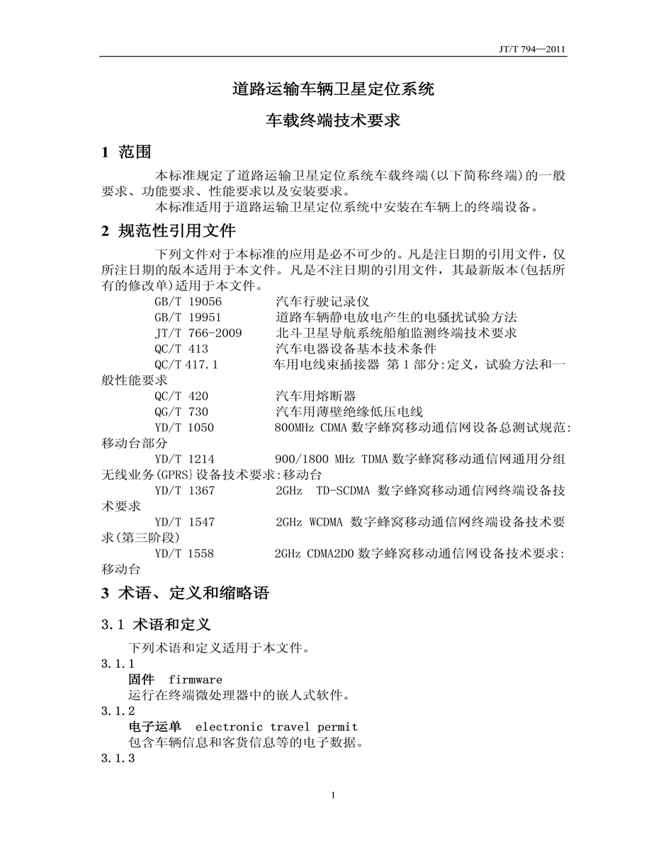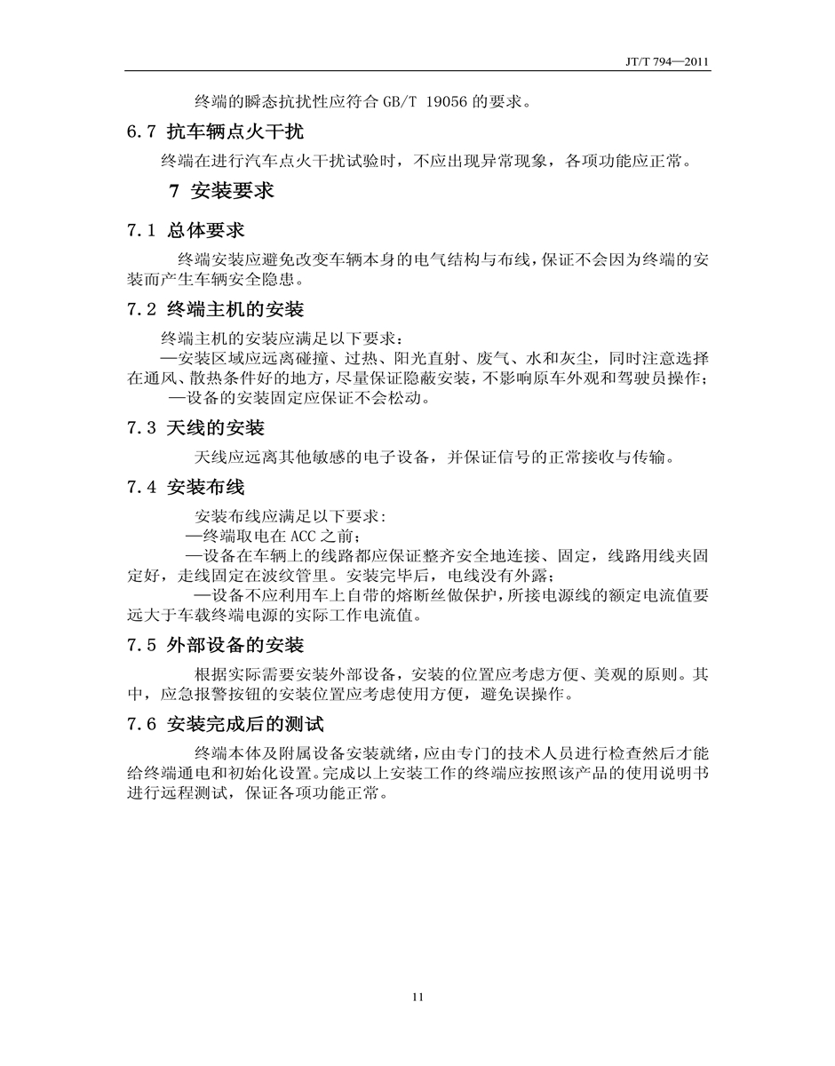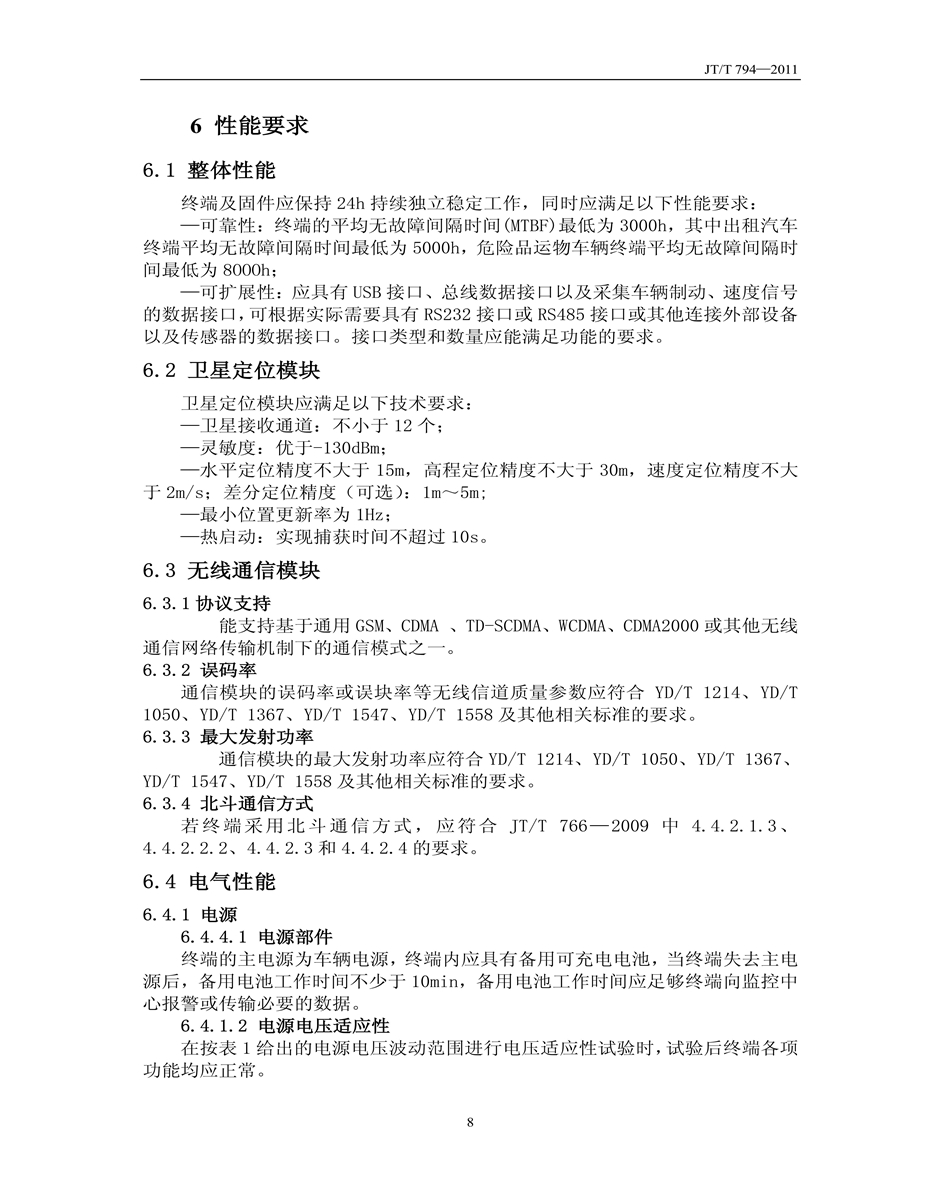JT/T794-2011道路運輸車輛衛(wèi)星定位系統(tǒng)車載終端技術(shù)要求