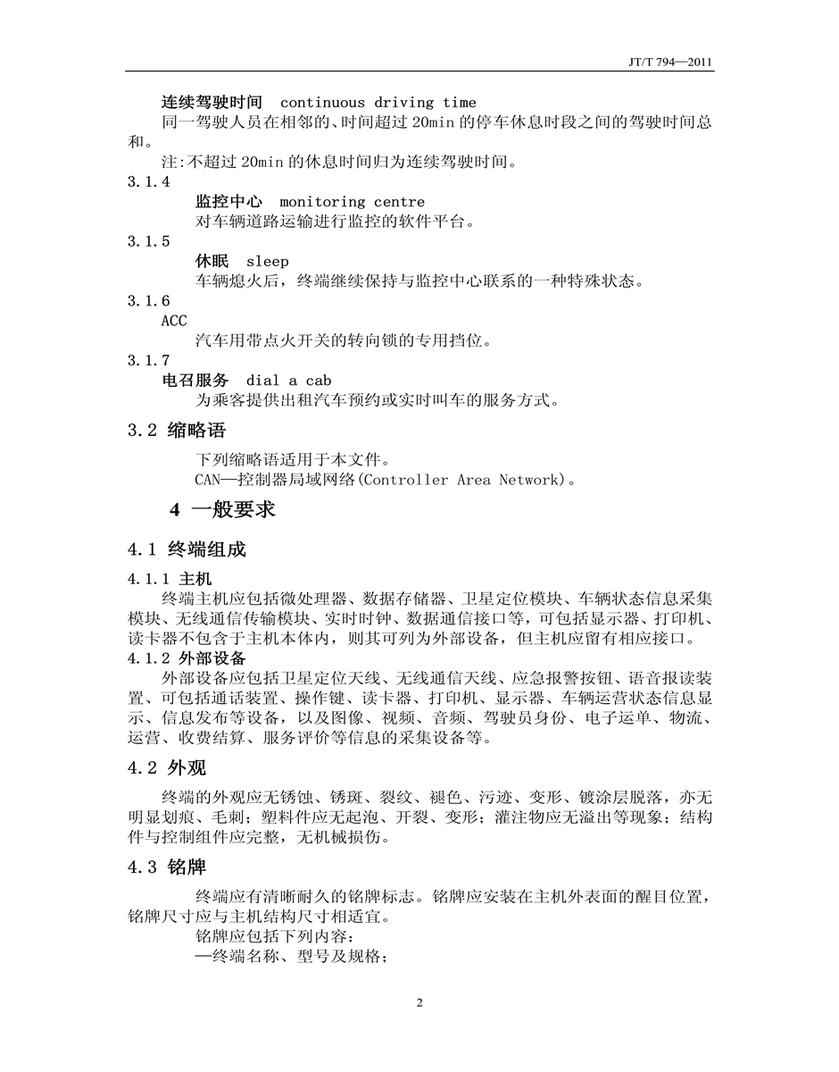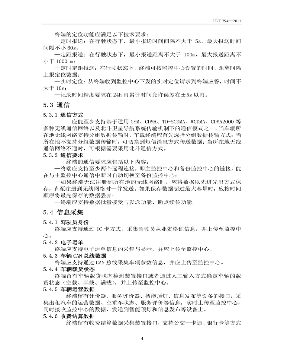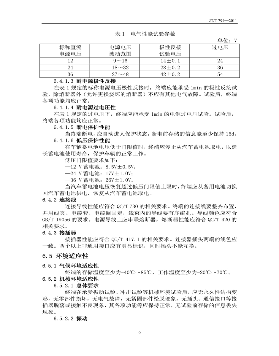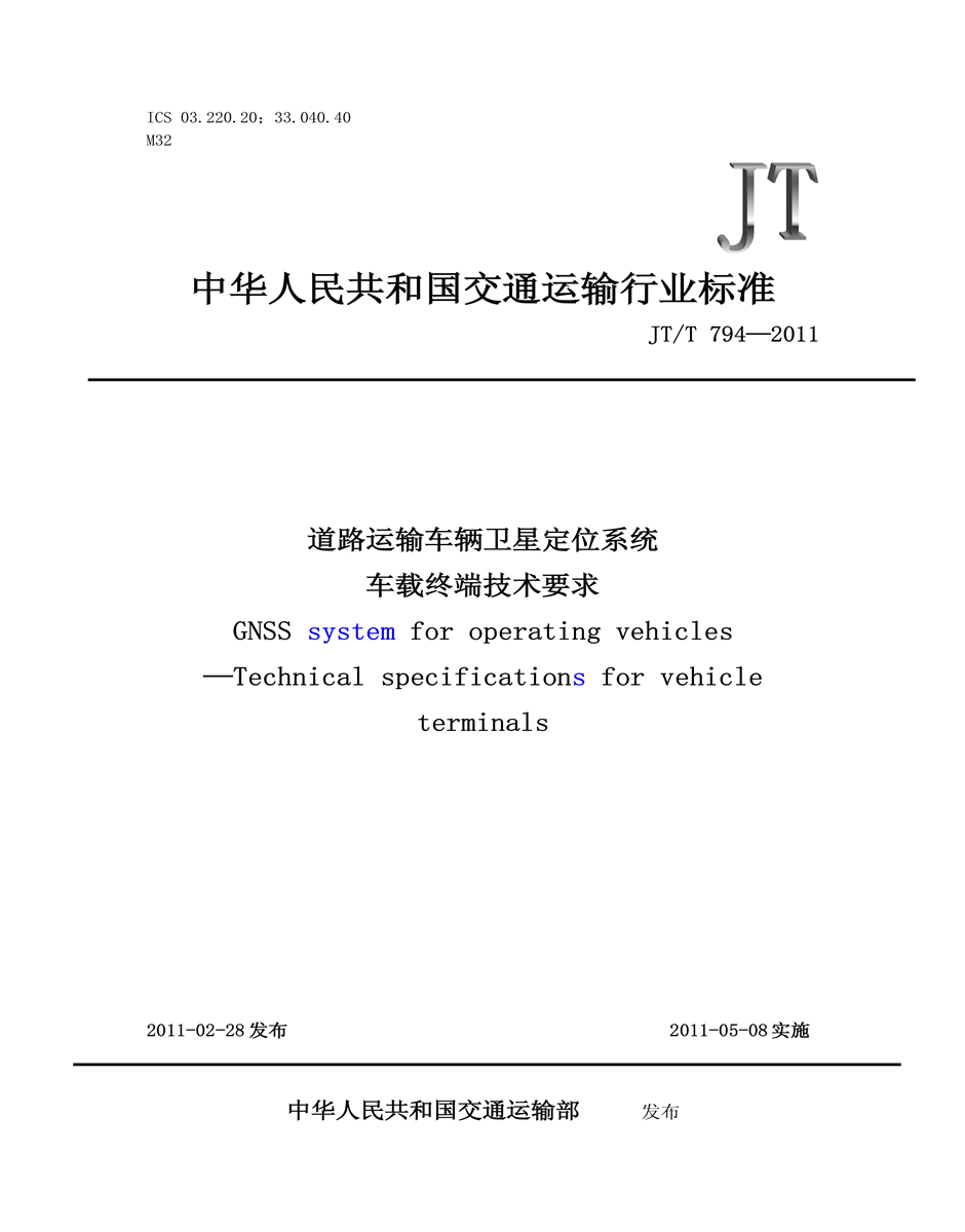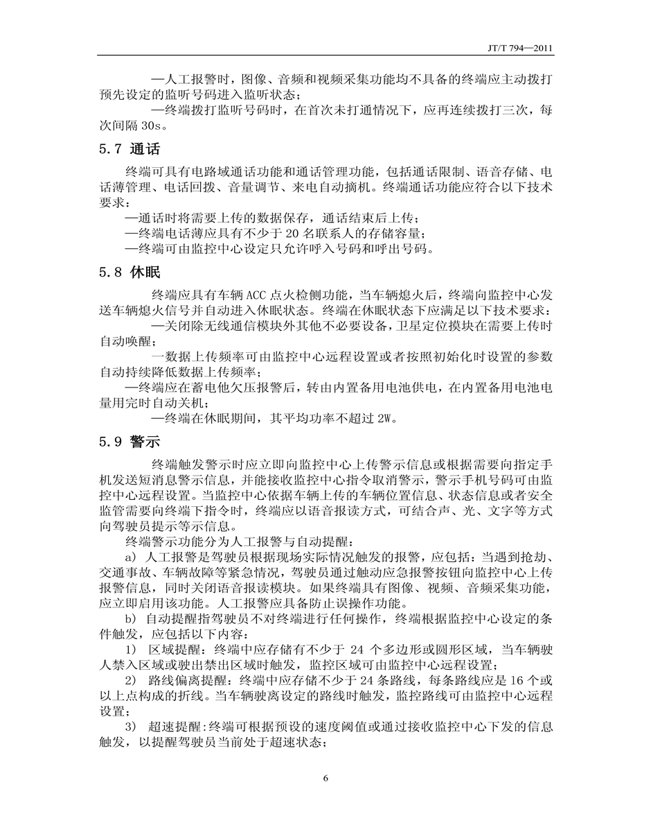 JT/T794-2011道路運輸車輛衛(wèi)星定位系統(tǒng)車載終端技術(shù)要求