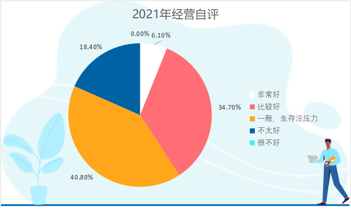 2021年應(yīng)該是行業(yè)發(fā)展環(huán)境相對(duì)較差的一年,具體表現(xiàn)為政策驅(qū)動(dòng)乏力,監(jiān)管、獎(jiǎng)懲趨嚴(yán),傳統(tǒng)服務(wù)低價(jià)競爭激烈,跨界競爭加劇,服務(wù)主體(運(yùn)輸企業(yè))需求下降、跨界競爭加?。ㄐ履J剑?,不過細(xì)分市場、后市場、數(shù)據(jù)增值服務(wù)帶來了不少機(jī)會(huì),也就是說車聯(lián)網(wǎng)行業(yè)存量廝殺已經(jīng)進(jìn)入白熱化階段,在新興領(lǐng)域開辟疆土成為不錯(cuò)的選擇。雖然行業(yè)發(fā)展環(huán)境一般,但是大多數(shù)公司都認(rèn)為自己經(jīng)營的還不錯(cuò),只有18.4%的公司認(rèn)為自己在2021年的發(fā)展不太好。