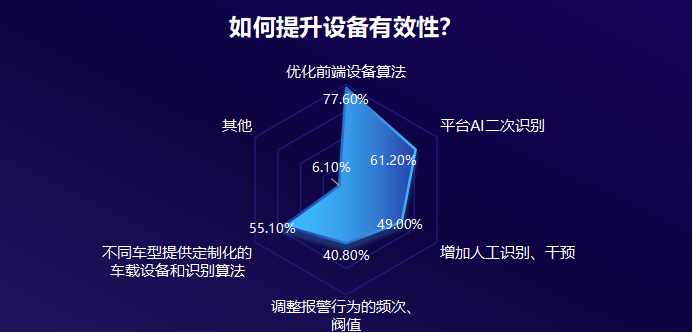 預(yù)警的有效性是這兩年智能視頻監(jiān)控報(bào)警設(shè)備應(yīng)用討論較多的問題,報(bào)警次數(shù)太多,無效報(bào)警較多以及報(bào)警次數(shù)太少,都是讓人頭疼不已的問題。那么,該如何提升視頻監(jiān)測報(bào)警數(shù)據(jù)的有效性呢?可以通過優(yōu)化前端設(shè)備算法,增強(qiáng)平臺(tái)AI二次識(shí)別,增加人工識(shí)別、干預(yù),調(diào)整報(bào)警行為的頻次、閥值,不同車型提供定制化的車載設(shè)備和識(shí)別算法等手段提升設(shè)備報(bào)警數(shù)據(jù)的有效性。行業(yè)目前最希望看到的應(yīng)該是行管部門出臺(tái)關(guān)于智能視頻監(jiān)控報(bào)警的統(tǒng)一管理規(guī)范、標(biāo)準(zhǔn),對(duì)需要報(bào)警的行為進(jìn)行細(xì)分、明確,對(duì)于達(dá)到報(bào)警的行為過程加以規(guī)范,營造良好的道路運(yùn)輸環(huán)境。