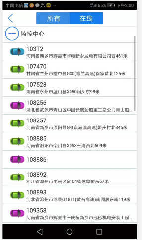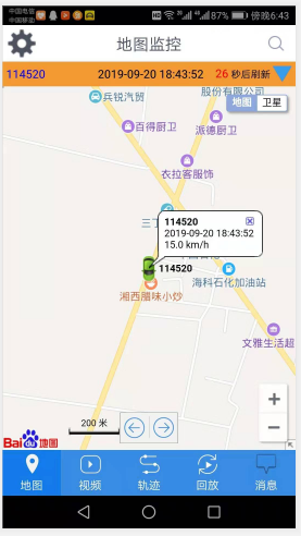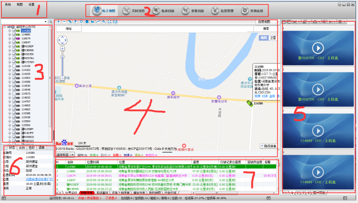 4.實(shí)時(shí)監(jiān)控區(qū):在地圖上查看設(shè)備的位置等信息,可居中定位指定的車輛。